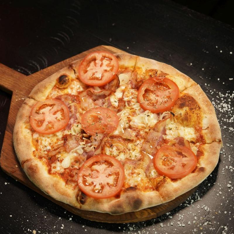Pomidory san marzano / mozzarella / bazylia / pancetta / pomidor / biała cebula / czosnek / oregano