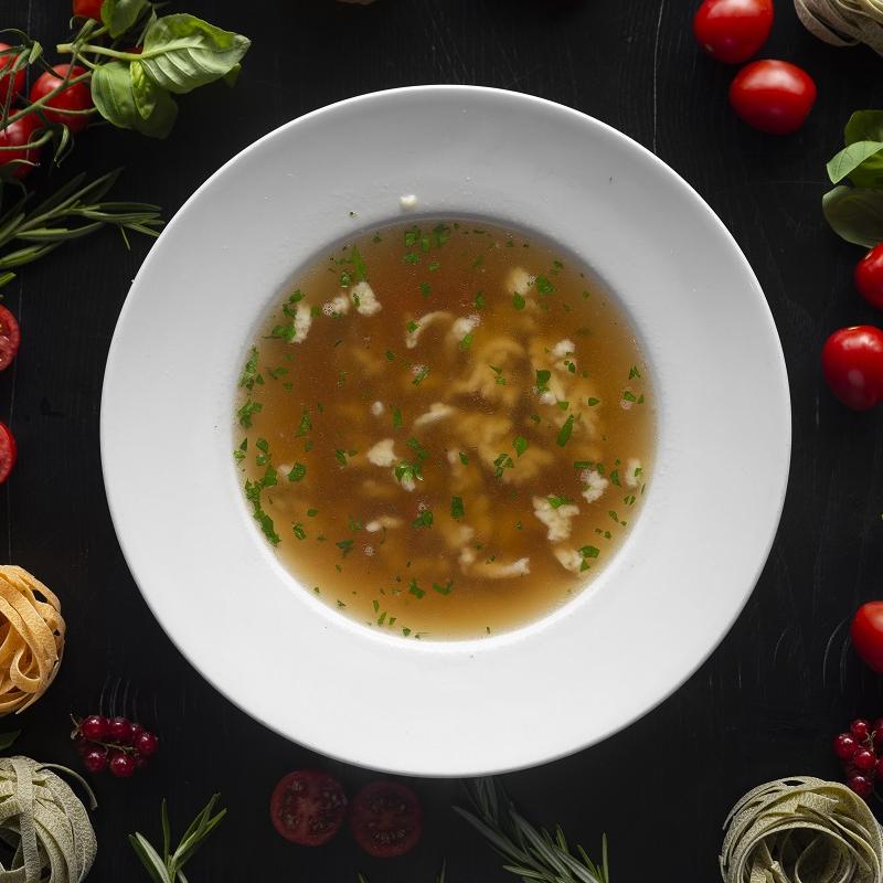 Rosół z pieczonej kaczki z kluseczkami z parmezanu